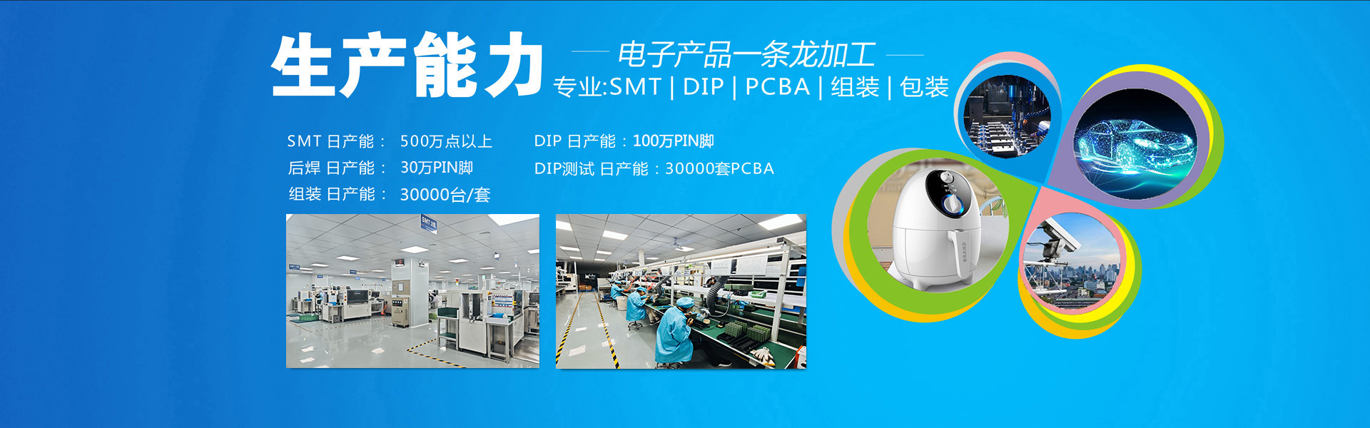 >>日產(chǎn)能貼片500萬(wàn)點(diǎn)、插件100萬(wàn)PIN、組裝3萬(wàn)臺(tái)/套